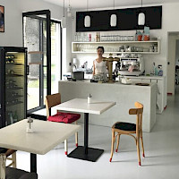 We offer a bar for tapping beer or brewing coffee, with an indoor space with a capacity of 25 people, as well as an outdoor garden offering up to 50 seats.