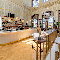 Inquire venueWelcome to the Foyer Café, a unique gem located in the Fant building in the heart of Prague, where art nouveau elegance is combined with the enticing aroma of fresh coffee, the fizz of pearls in a glass and a fascinating view of the endless city bustle. It is an iconic retreat where history comes alive in every detail – from the exquisite frescoes to the floral painting that breathes life into ancient traditions.