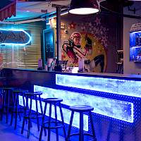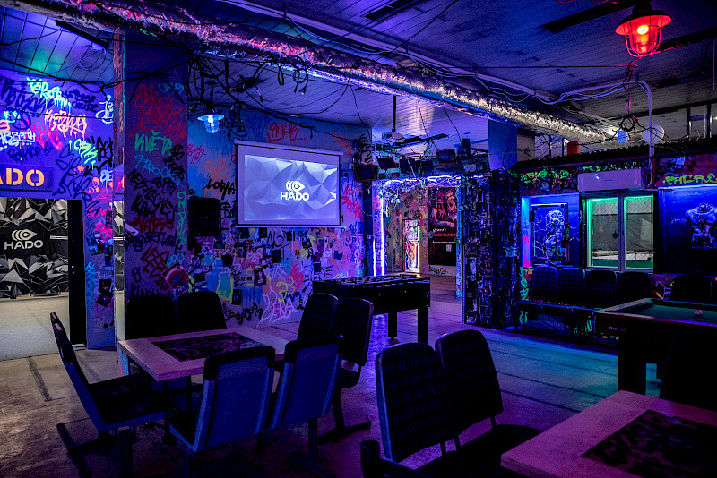 Inquire venueA space that you can imagine as a small town from the dystopian world of Cyberpunk full of traditional and non-traditional activities such as HADO, Ax Throwing, Human Table Football and Battle robots. Here you will also find a square with a bar, a Forrest geek area where you will feel like you are on Pandora in Avatar or a game room with billiards, table football and darts. Underground City is such a unique space that it cannot be described in words, but it must be seen!