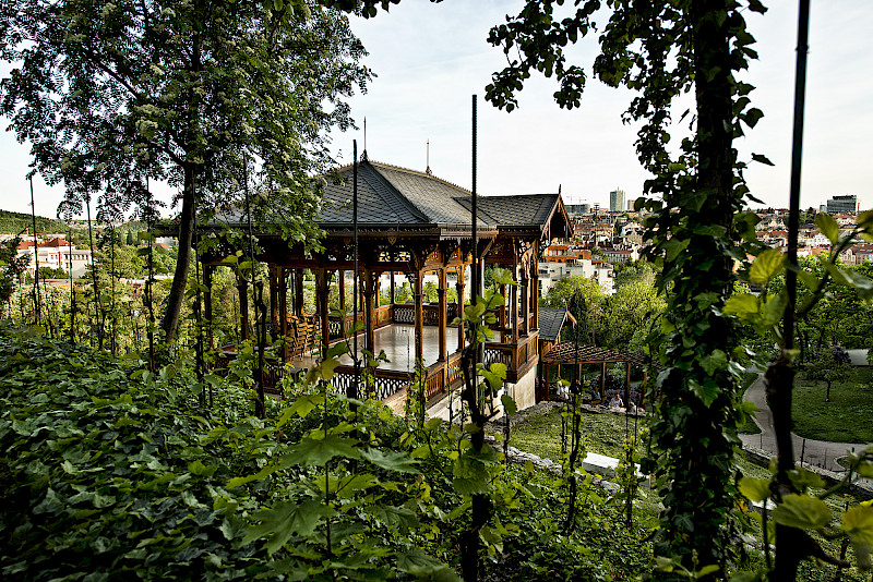 A romantic gazebo in the middle of a vineyard right in the center of Prague
