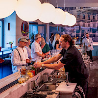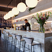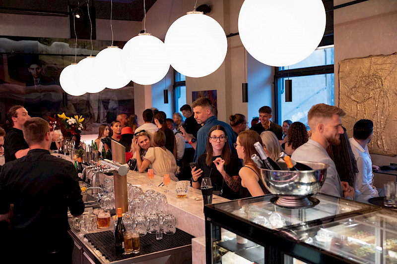 For drinks? Well-prepared Pilsner on tap, great wine, cocktails – and they'll even prepare a special drink in your company's colors.