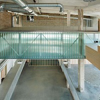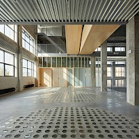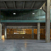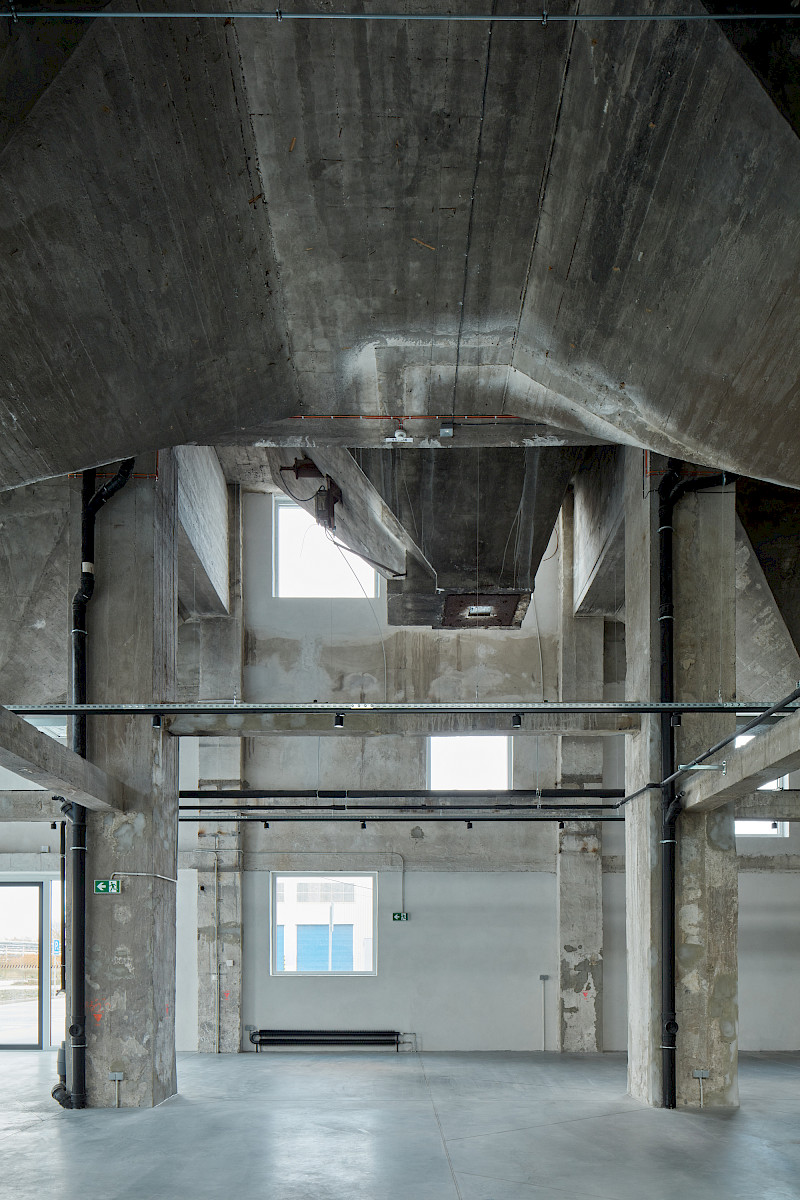 The original concrete hoppers, the impressive height of the space and its openness, or the connection to the administrative spaces on the upper floors of the Mill, accentuate the genius loci of the building and naturally enhance the unique, captivating fusion of the original industrial architecture with the new and modern architectural concept.