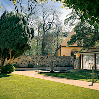 Zahrada v historickém areálu Uměleckoprůmyslového muzea v Praze.