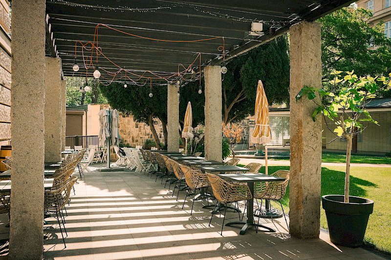 The garden includes a terrace with outdoor seating for a restaurant inside the museum building. The garden can be hired in conjunction with an event in the conference hall, and is ideal for an afternoon or evening programme.