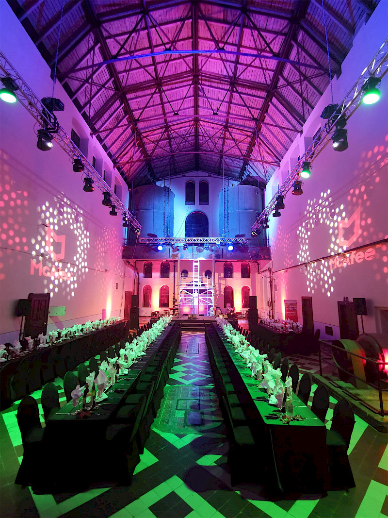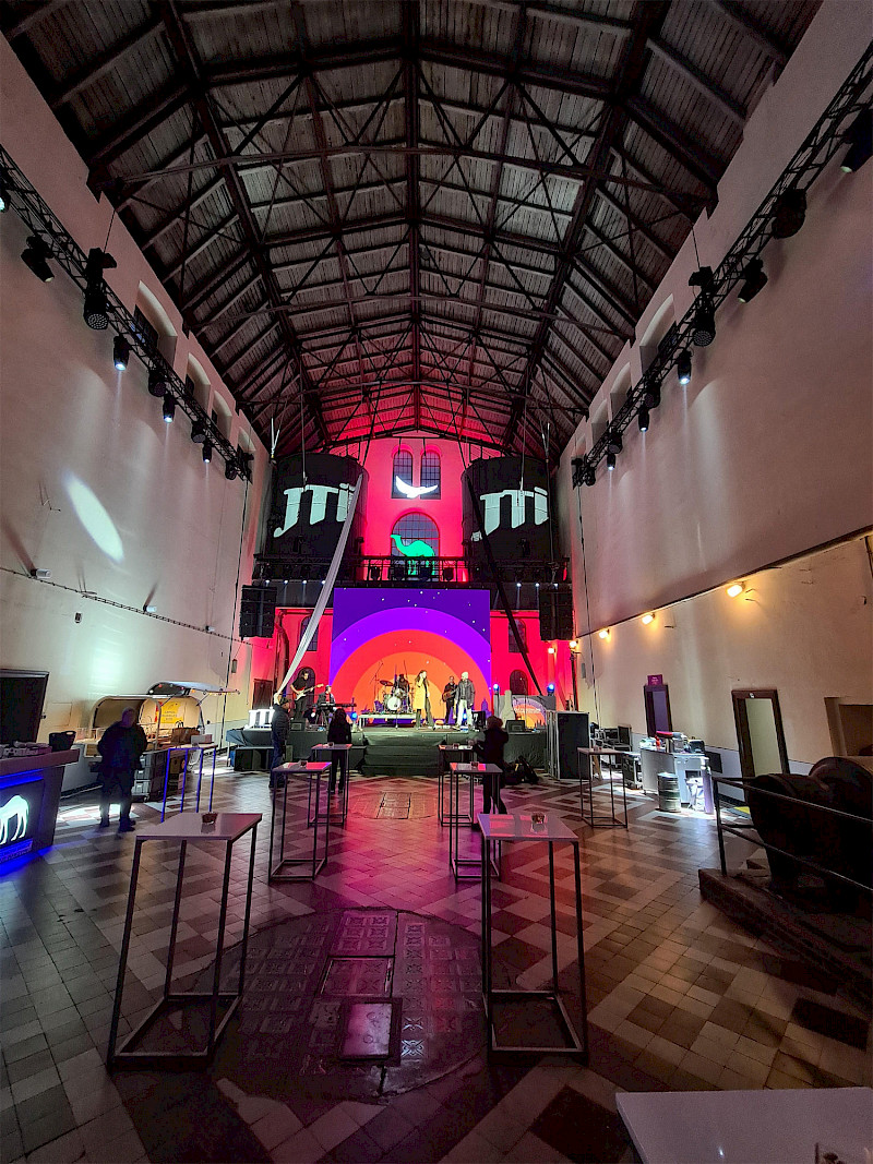 Inquire venueThe main hall is the largest space in the Old Cleaning Plant building. It is an industrial space with distinctive elements and a high ceiling. It is ideal for conferences, corporate events, social evenings, concerts, etc.