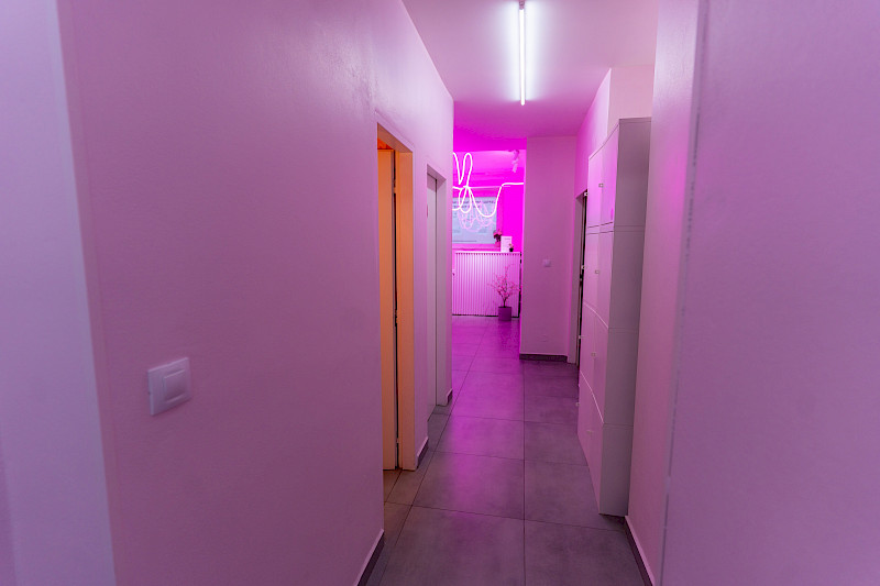 The space consists of nine interconnected creative rooms. In the center of the entire space is the main room with seating and refreshments (we adapt the layout of the main room completely to your requirements). The space also includes a dressing room, toilet, reception, bar counter, inventory (dishes, glasses, cutlery, bankruptcy tables), display technology, sound system and Wi-Fi.