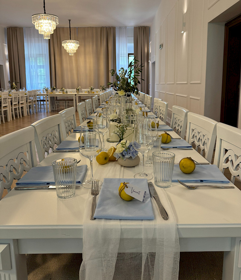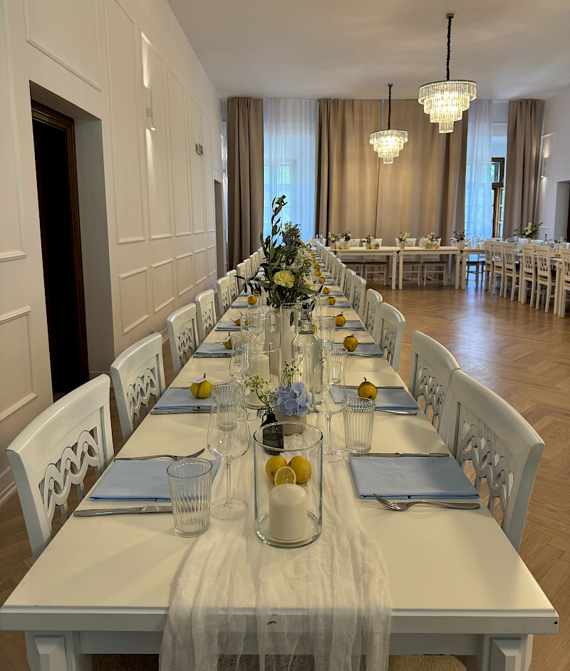 In the premises of our castle there are seven separate rooms for thirty and a central Foyer for up to one hundred and fifty guests. We are able to satisfy the highest demands of our clients for corporate events of up to 500 people.