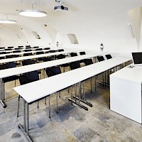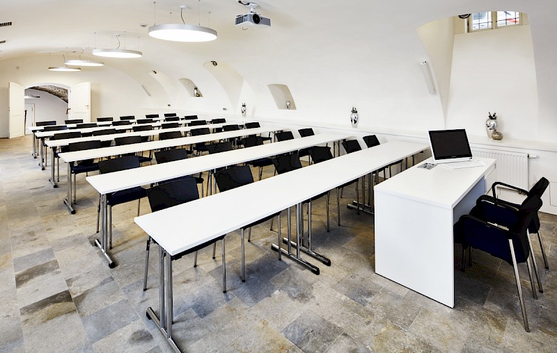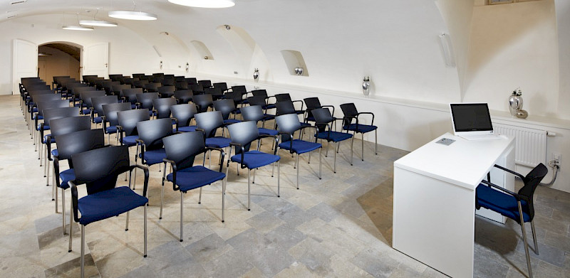 Sál v suterénu Braunova domu pro uzavřené konference nebo školení.