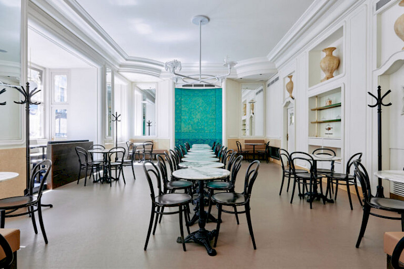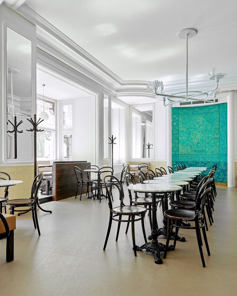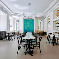 Cukrárna v rondokubistické budově v srdci Prahy.