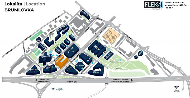 Poptat prostorProstor FLEKSI se nachází v centru lokality Brumlovka. Multifunkční areál je sídlem mnoha významných českých i mezinárodních firem a vyznačuje se mimo jiné výbornou dopravní dostupností a nadstandardní občanskou vybaveností.