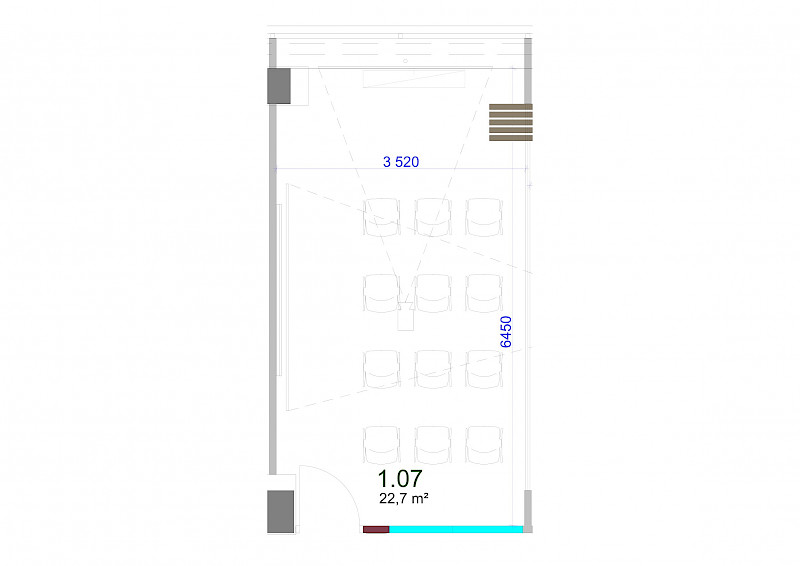 Kapacita místnosti: až 12 osob ve školním uspořádání, 8 v zasedacím