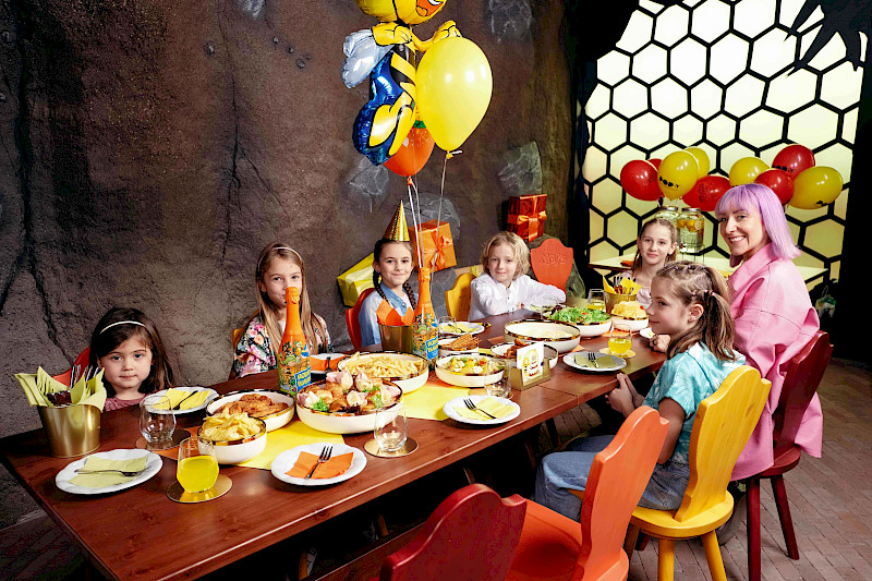 Uspořádejte ji v největším krytém zábavním parku Majaland. Pro oslavence, jeho kamarády a jejich dospělý doprovod rádi připravíme pohádkovou narozeninovou oslavu na klíč již od 4 041 Kč pro deset dětí a deset dospělých. Od kouzelné výzdoby, přes lahodné občerstvení až po jedinečné setkání s včelkou Májou nebo Vilíkem. Děti si navíc užijí nekončící zábavu na úžasných tematických atrakcích a nezapomínáme ani na dospělé.