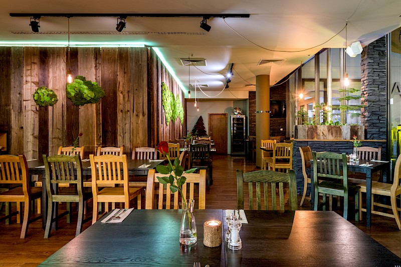Nabízíme Vám moderní lehká jídla světové i české kuchyně, která připravujeme z čerstvých surovin od dodavatelů, chovatelů a pěstitelů na jejichž výběru si dáváme obzvlášť záležet. Naší snahou je, aby si na|jedli pochutnali úplně všichni. Ti, kdo maso milují stejně jako ti, kteří ho nevyhledávají. Nejspokojenější budeme, když si po návštěvě u nás řeknete, že jste se opravdu dobře na|jedli.