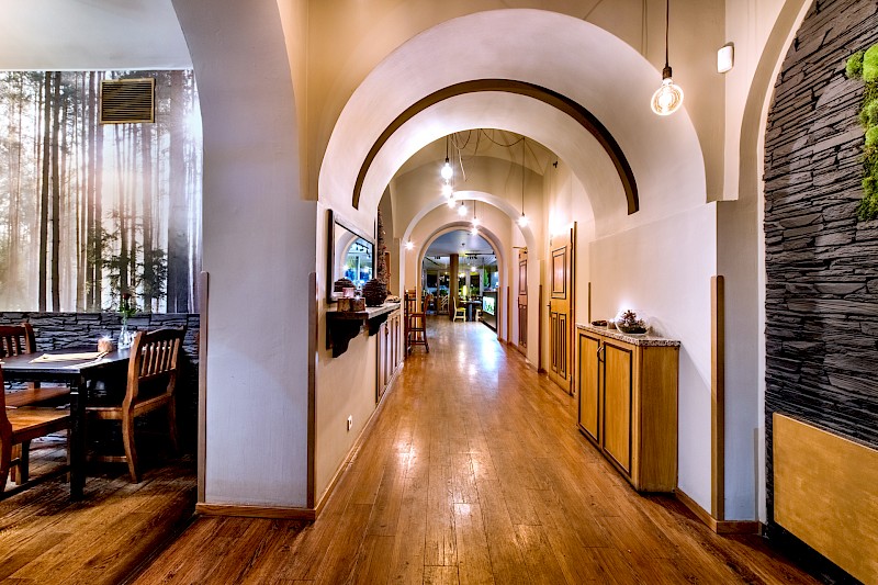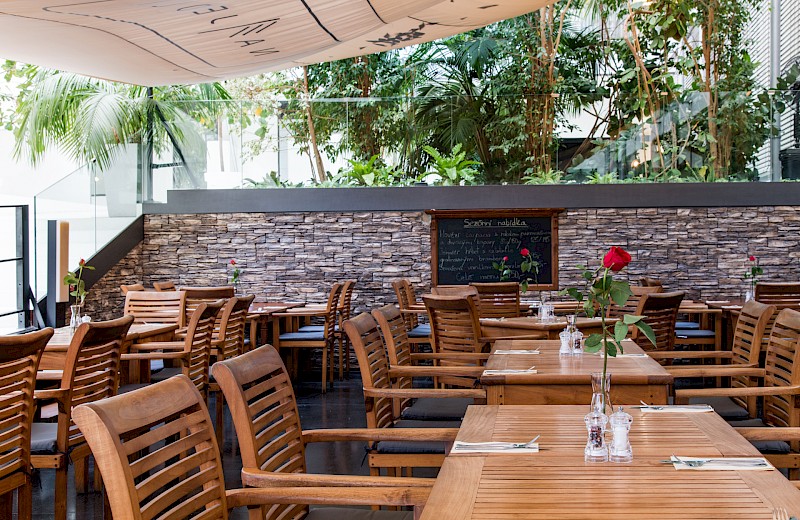 K dispozici je dle počtu hostů salónek, vnitřní část restaurace s barem, celoroční zahrádka v krytém atriu nebo všechny prostory Jedle dohromady.