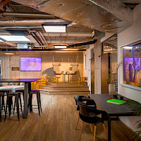 Poptat prostorMultifunkční prostor nabízí moderní a inspirativní prostředí ideální pro menší firemní akce, workshopy, neformální networking i umělecké prezentace. Kombinace industriální architektury, důrazu na umělecký detail a flexibilního uspořádání vytváří unikátní atmosféru, která podpoří kreativitu i uvolněnou diskusi.
