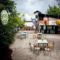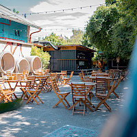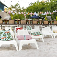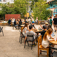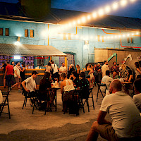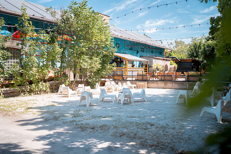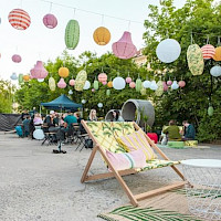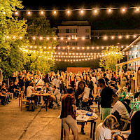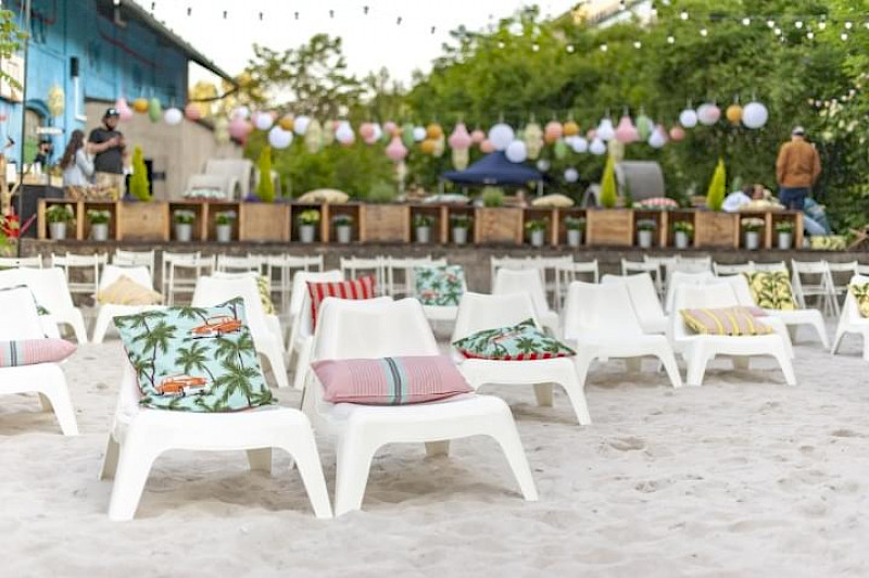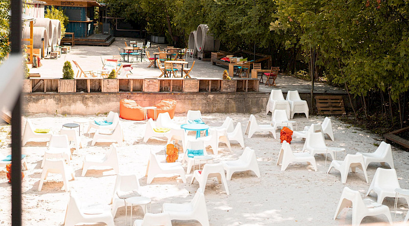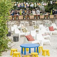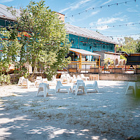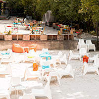 Poptat prostorPřední zahrádka je ideálním místem pro větší akce. Část zahrady se nachází na zpevněném povrchu a část na pískové pláži, kde probíhá také letní kino.