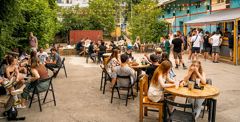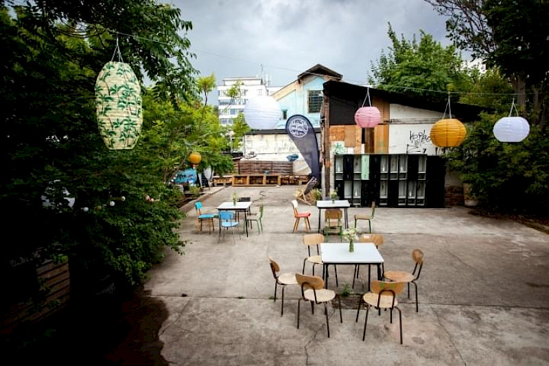 Přední zahrádka je ideálním místem pro větší akce v Radlické Kulturní Sportovny