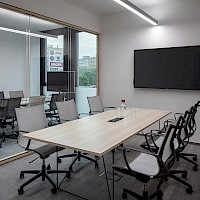 Poptat prostorZasedací místnost v moderní budově s certifikátem LEED.