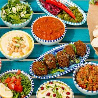 Výborná středomořská restaurace s terasou a přilehlou zahradou v srdci Prahy