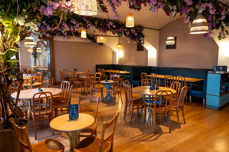 Stylové prostory v centru Prahy vytvářejí jedinečné prostředí, kde se moderní design snoubí s útulnou atmosférou.. Perfektně se hodí pro soukromé oslavy, svatby, firemní setkání i brunch s přáteli. Samozřejmostí je bar, profesionální servis a variabilní uspořádání stolů přesně podle vašich potřeb. Plocha: 150 m²